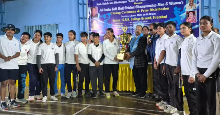 फिरोजाबाद। ऑल इंडिया महिला-पुरुष सॉफ्टवॉल किकेट चौम्पियनशिप का फाइनल मुकाबले बढ़ा ही रोमांचक देखने को मिला। महिला वर्ग में मध्य प्रदेश की टीम 13 रनों से विजेता रही। वहीं पुरूष वर्ग में उत्तर प्रदेश की टीम ने राजस्थान की टीम को 32 रनों से हराकर टूर्नामेंट की ट्राफी पर कब्जा जमा लिया। इसके बाद विजेता, उपविजेता टीम को अतिथियों द्वारा ट्राफी, नगद पुरस्कार देकर सम्मानित किया गया।