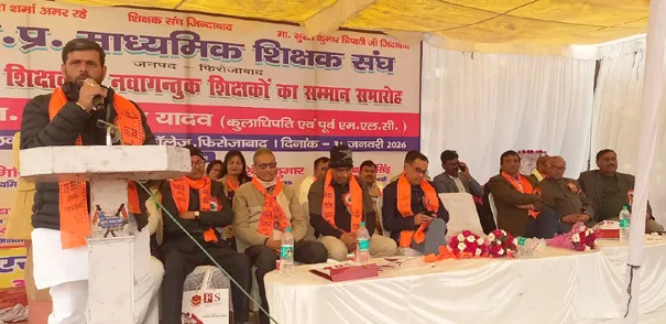 फिरोजाबाद। उ.प्र. माध्यमिक शिक्षक संघ के जिला सम्मेलन में सेवानिवृत शिक्षकों को विदाई, नवागंत शिक्षकों को सम्मानित किया गया। सेवानिवृत शिक्षकों को सामूहिक बीमा का चेक वितरित किया गया।