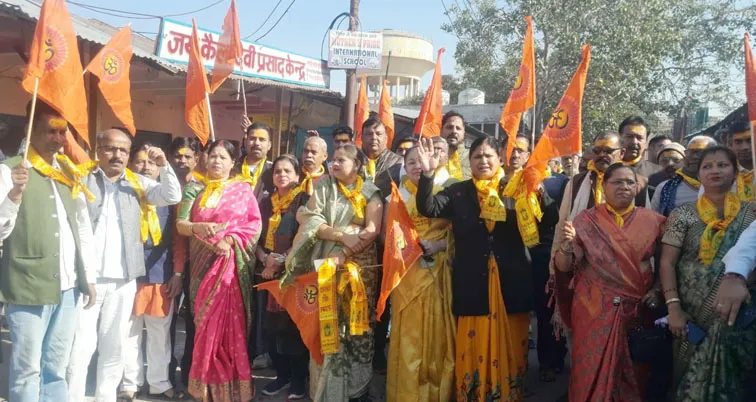 फिरोजाबाद। नगर के रामलीला मैदान में 17 फरवरी को विराट हिंदू सम्मेलन आयोजित होने जा रहा है। इसी के निमित्त सभी हिंदुओं को आव्हान हेतु एक आमंत्रण यात्रा गाजे-बाजे के साथ कैला देवी मंदिर से निकाली गई। आमंत्रण यात्रा में मातृ शक्ति, युवा शक्ति, संत शक्ति और सज्जन शक्ति ने पूरे मनोभाव से हिस्सा लिया।